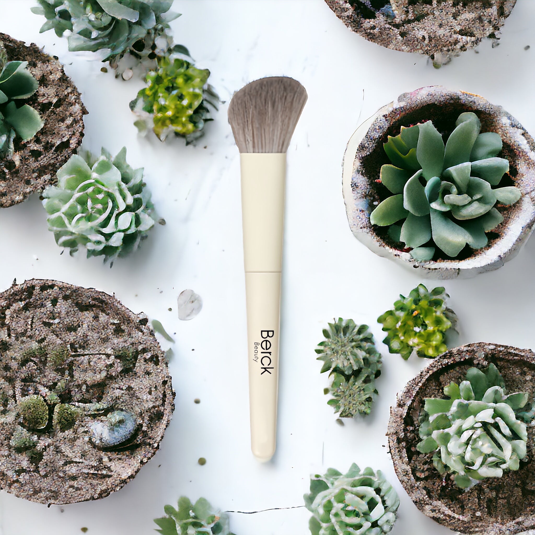 Berck Beauty's luxurious brushes are made up of a natural looking and feeling synthetic fiber hair and a solid wood handle… our brushes can be used for applications of all types of cosmetics... From creams to powders, our brushes create a beautiful and flawless finish!