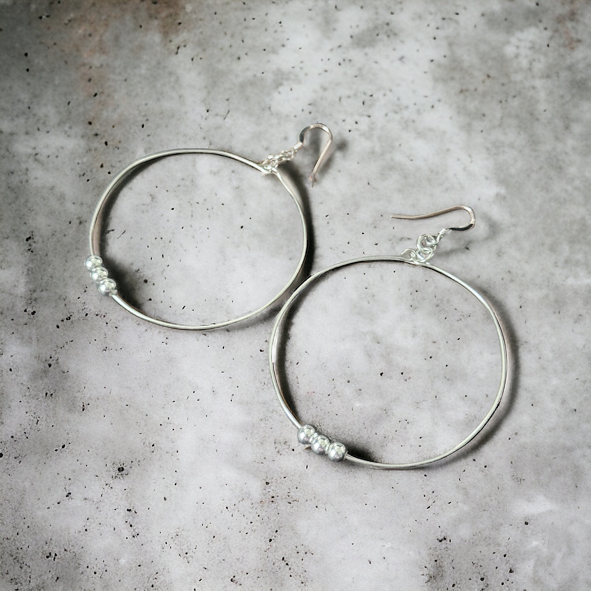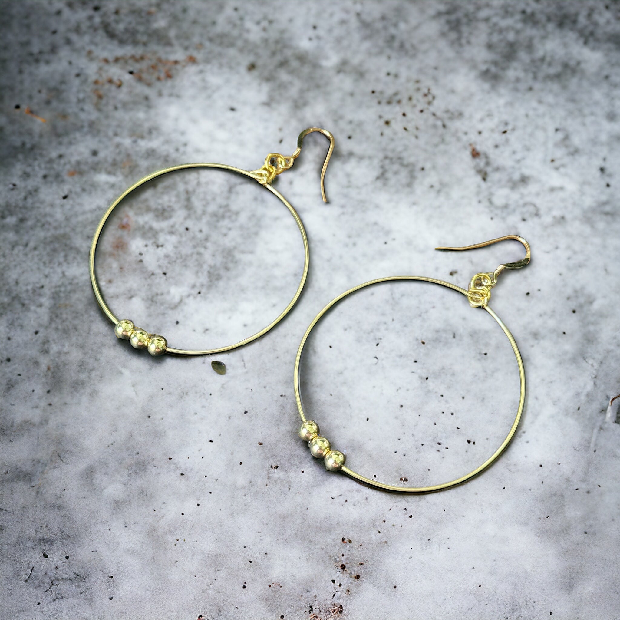Trinity Drop Hoop Earrings 14K Gold Filled or 925 Sterling Silver