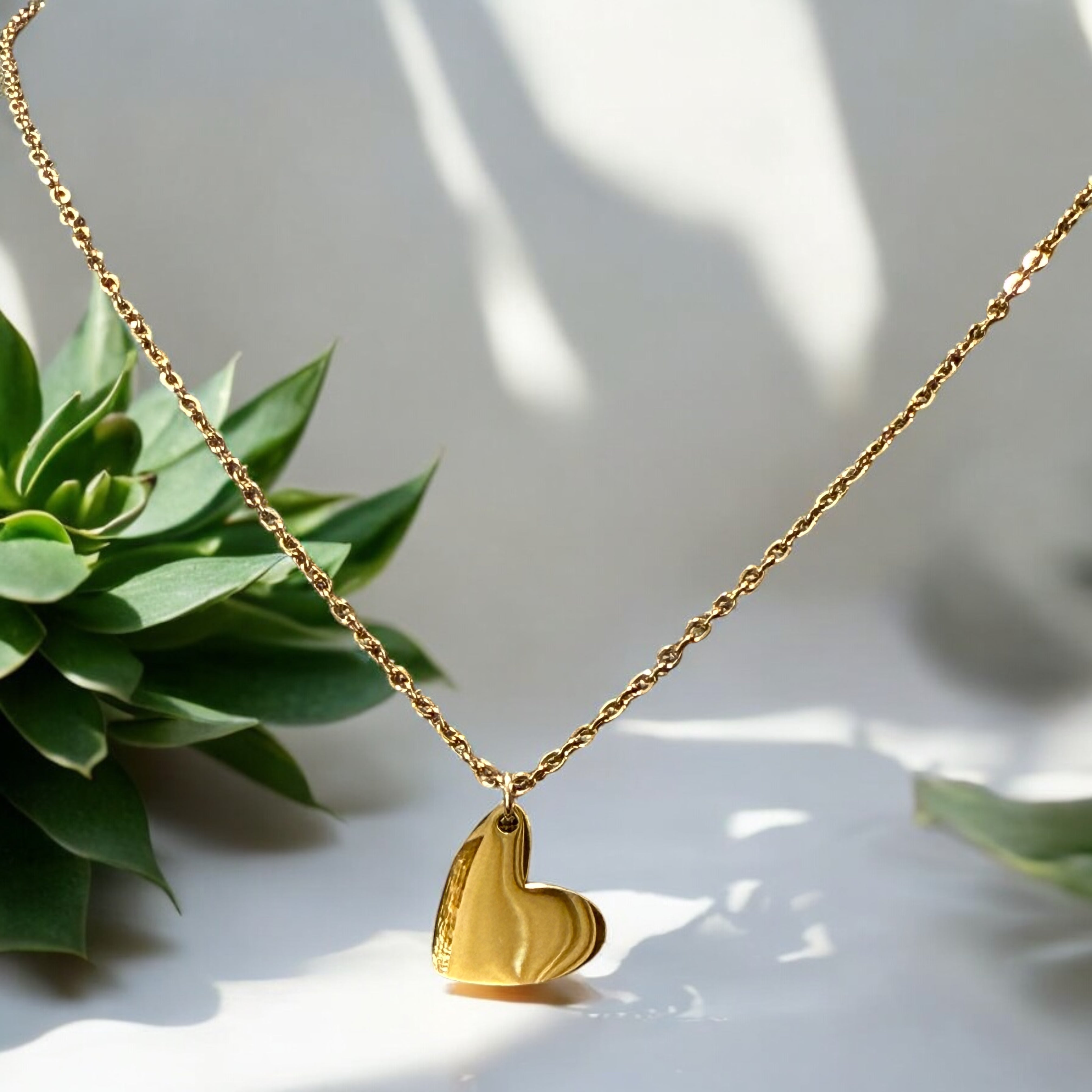 Smooth Abstract Heart Stainless Steel Necklace 18"
