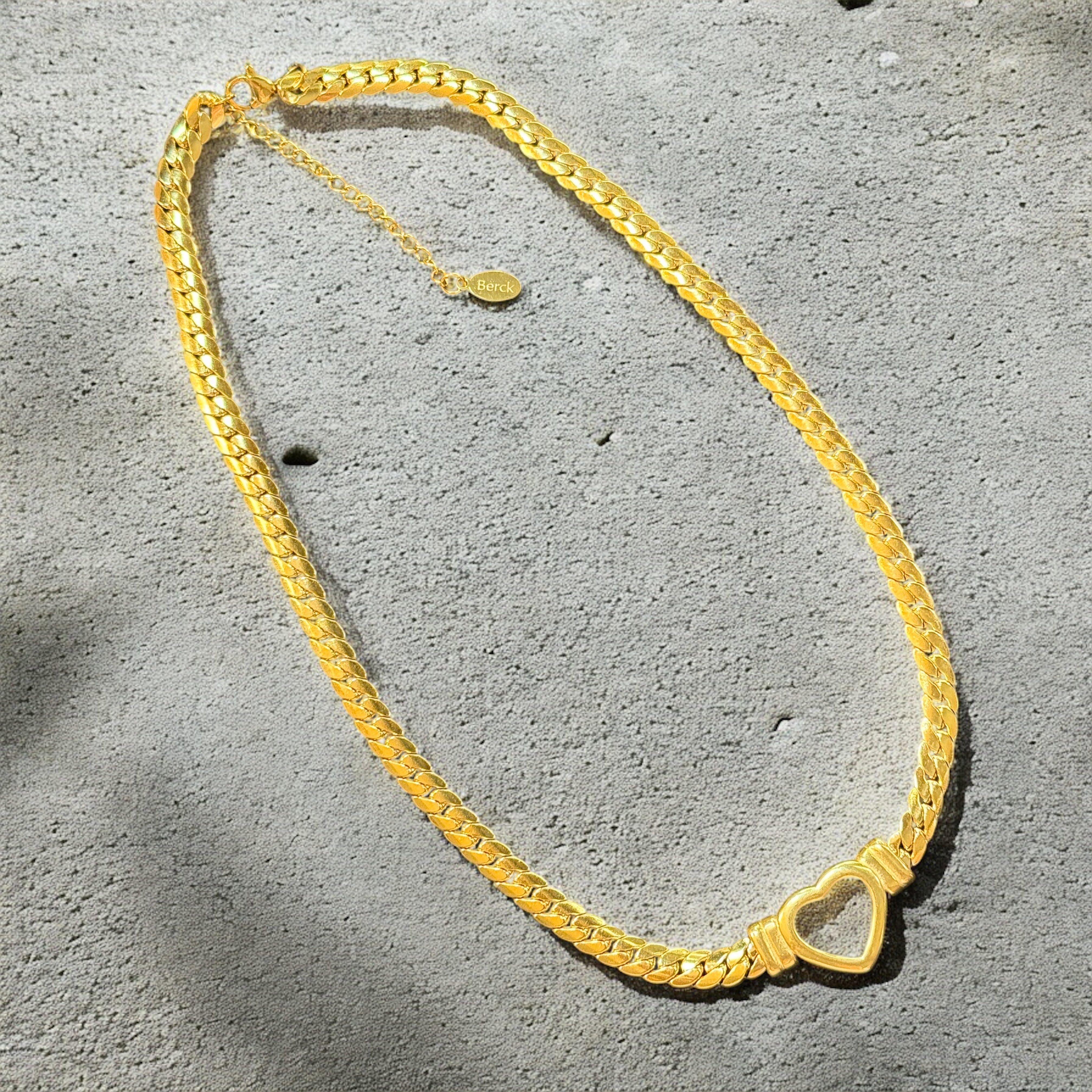 Waterproof Cuban Curb Chain Heart Necklace 15"-17"