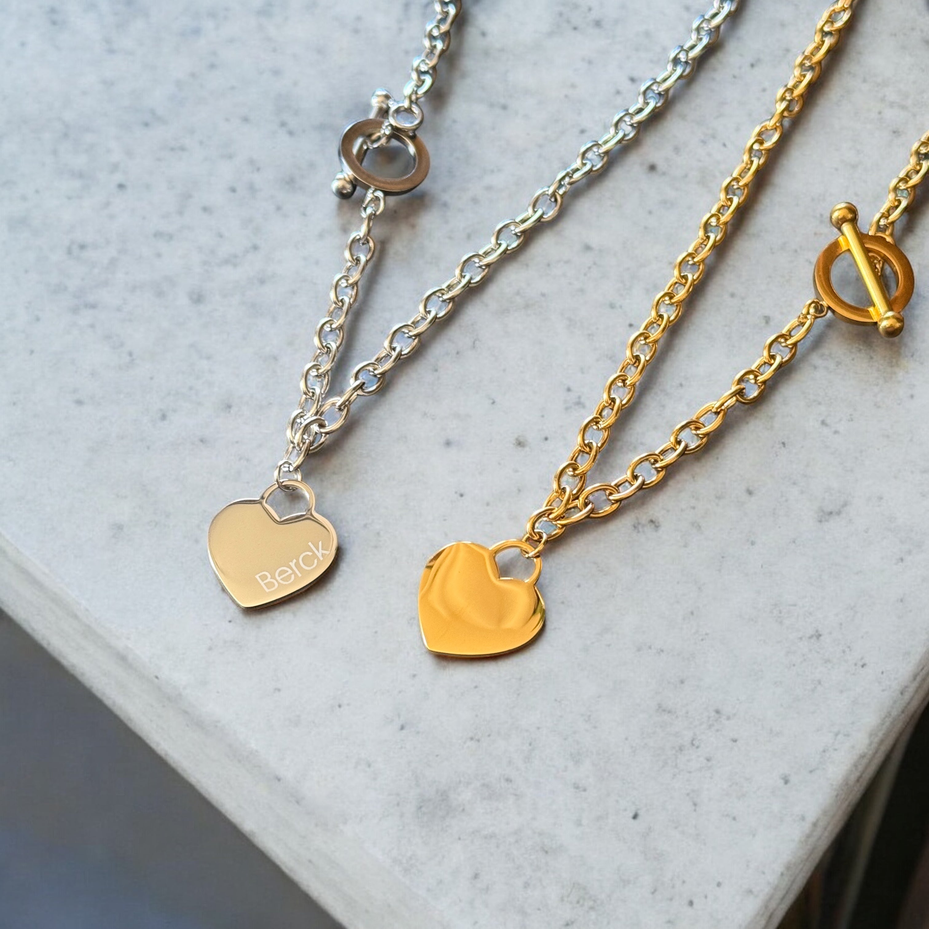 Waterproof Large Oval Link Chain Toggle Clasp Heart Necklace 18"