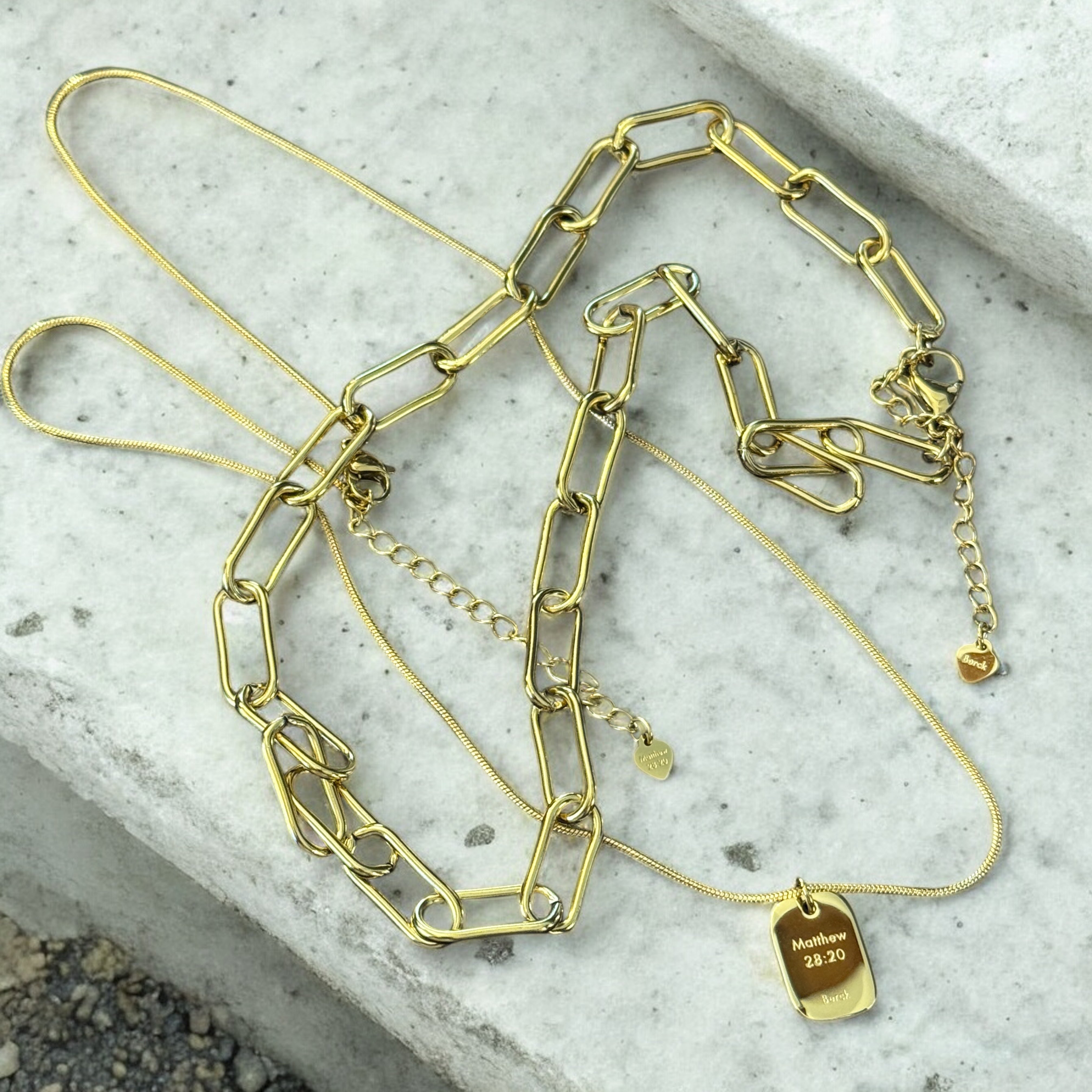 Waterproof Two Piece Layering Necklace "I am With You Always"