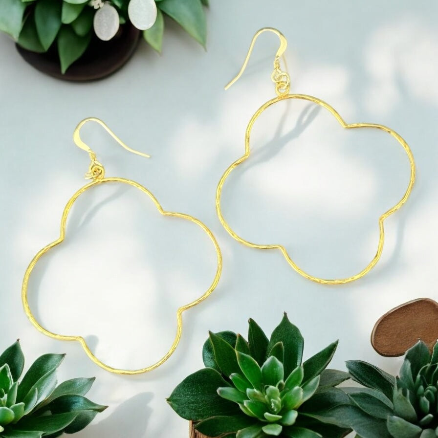 One-of-a-Kind 46mm Hammered Clover Drop Earrings Sterling Silver or 14K Gold Plated Sterling Silver