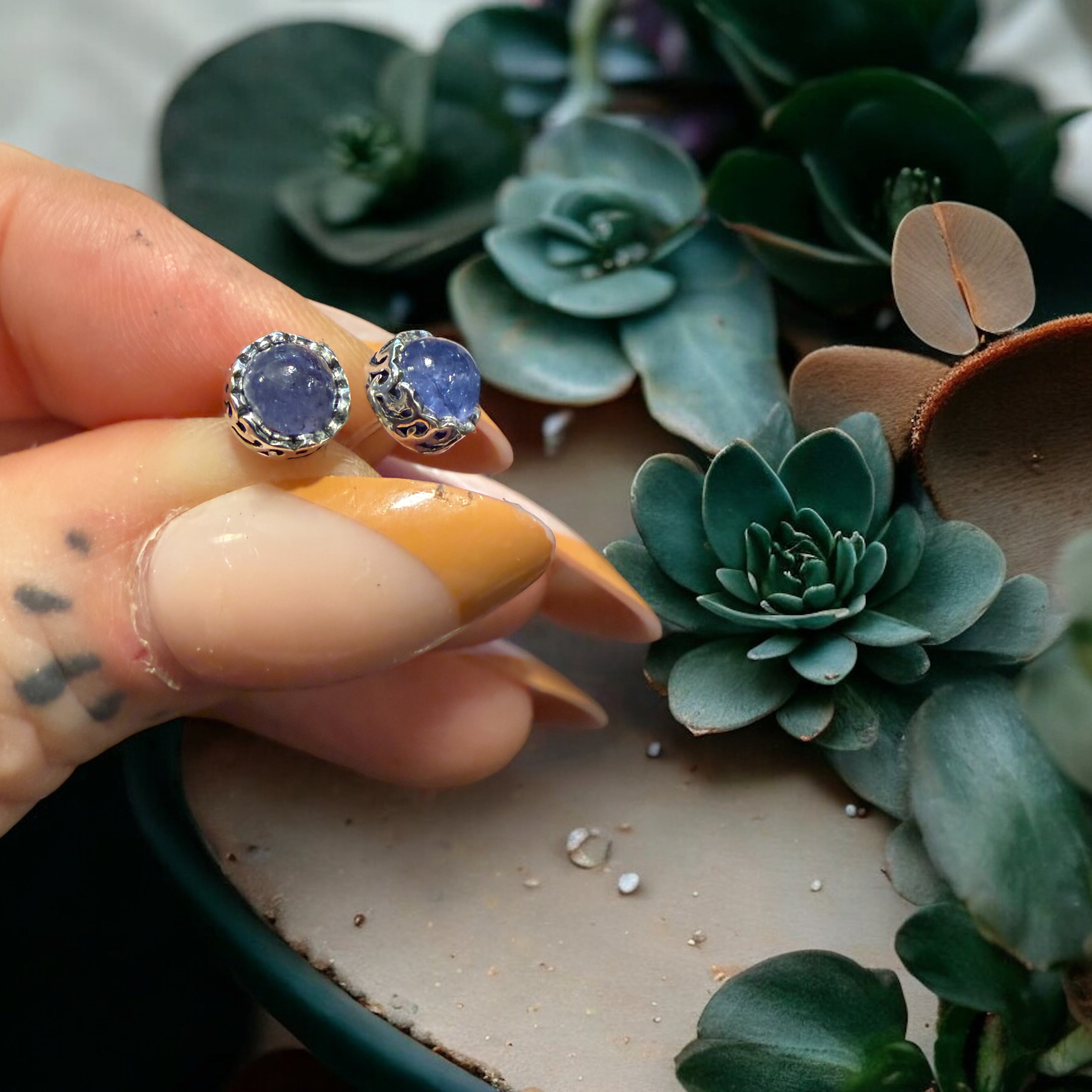 One-of-a-Kind 5mm Round Genuine Tanzanite Sterling Silver Stud Earrings