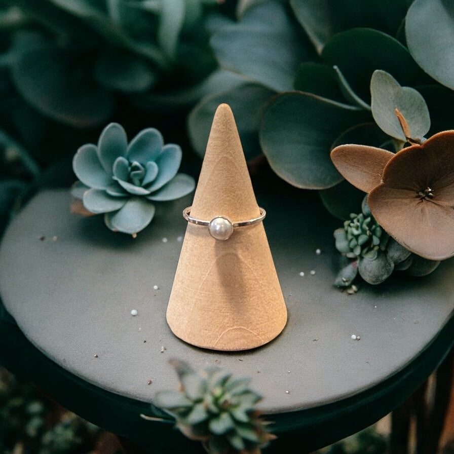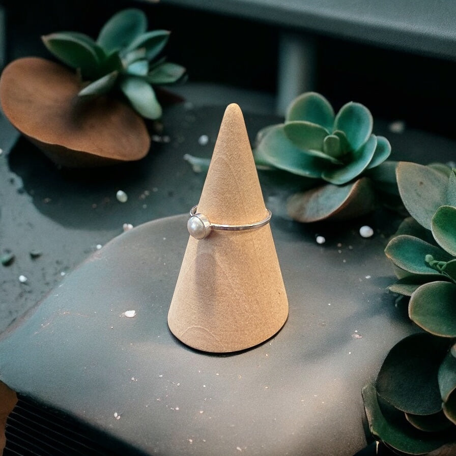 One-of-a-Kind 5mm Round Freshwater Pearl Sterling Silver Simple Bezel Set Ring