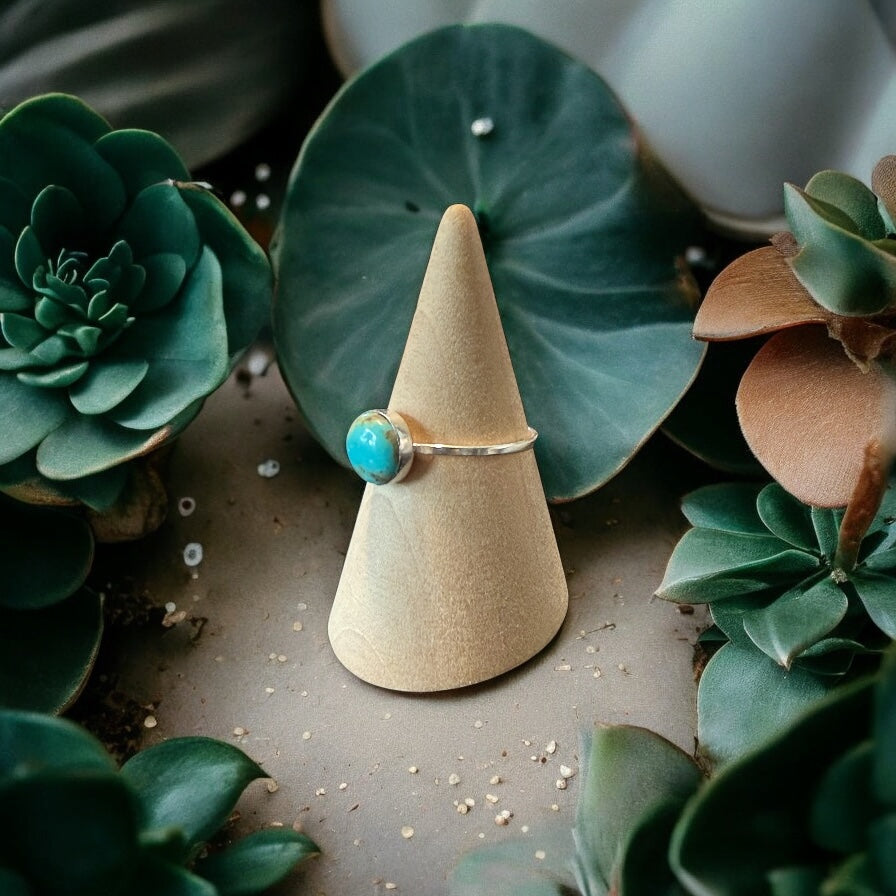 One of a Kind 8mm Round Kingman Turquoise Sterling Silver Ring