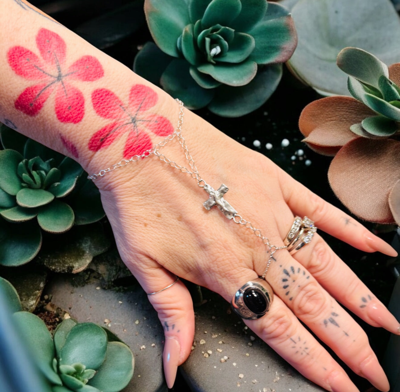 One-Of-A-Kind Artisan Cross Hand Chain Sterling Silver