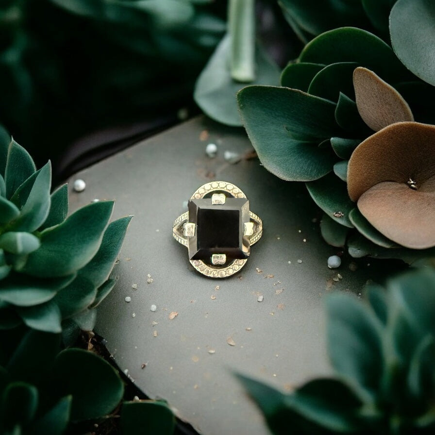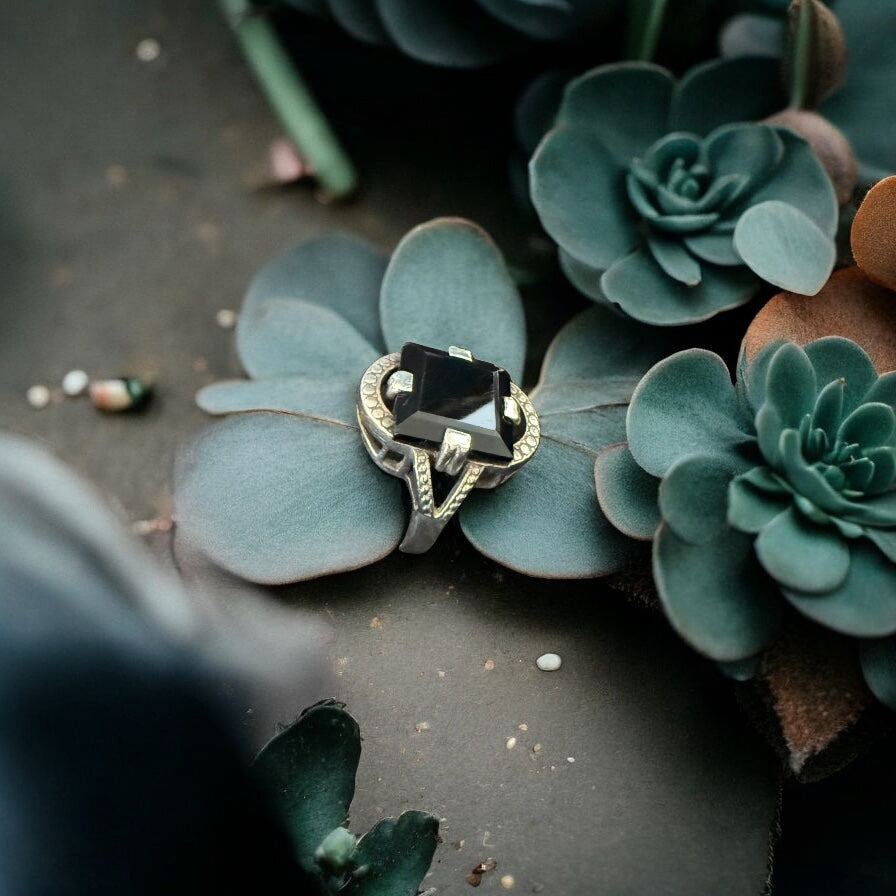 One of a Kind Black Onyx Square Sterling Silver Ring