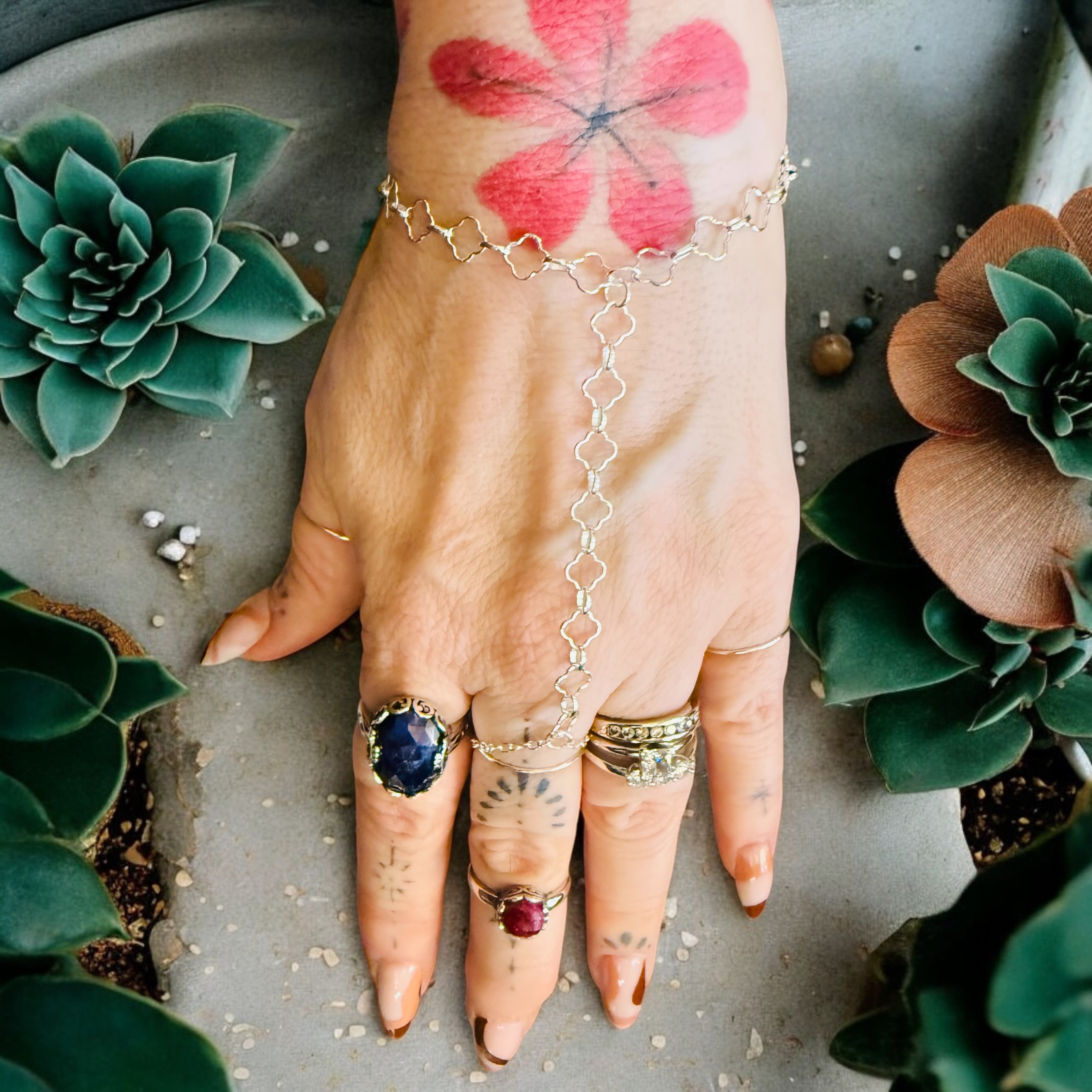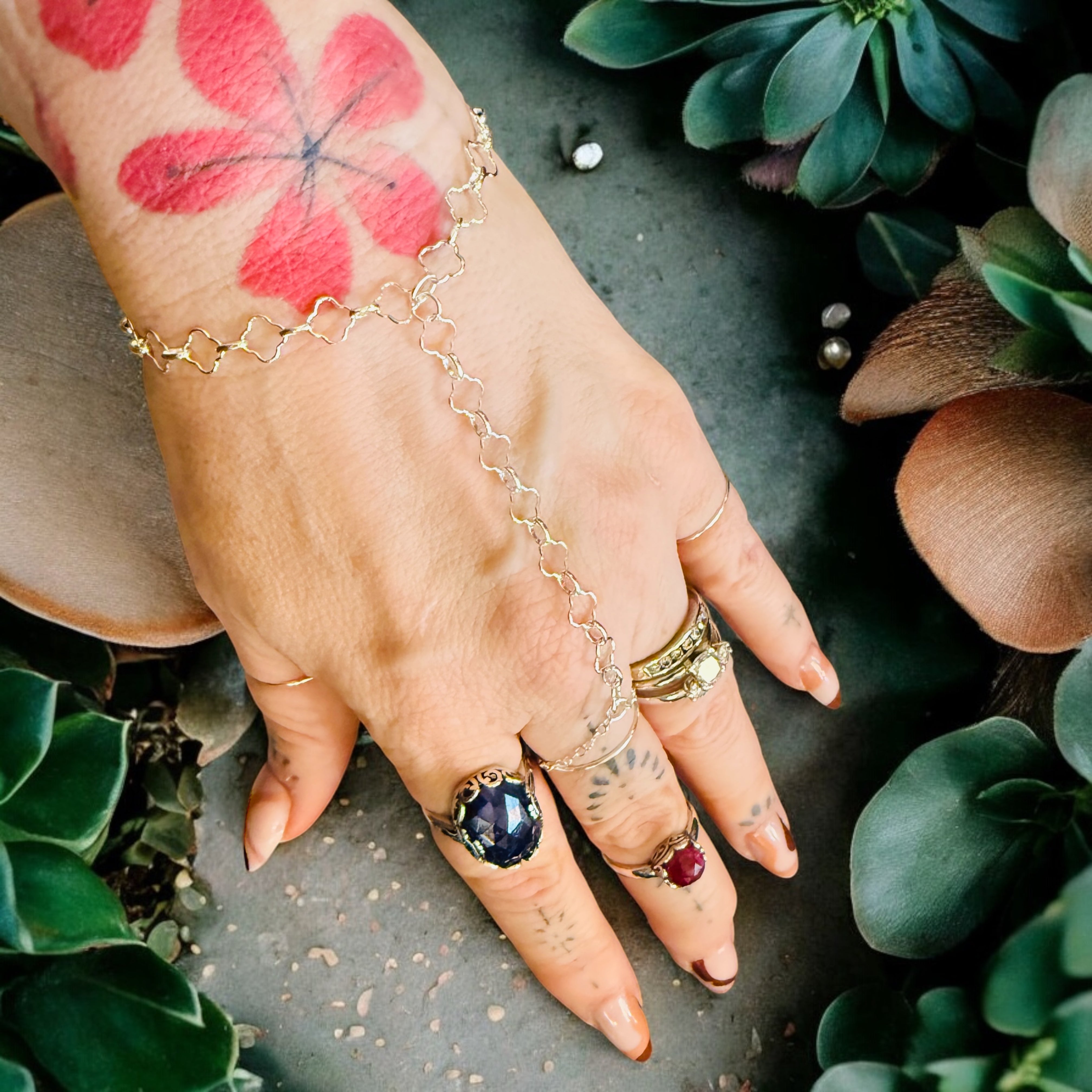 One-Of-A-Kind Clover Link Hand Chain 14k Gold Filled & Sterling Silver