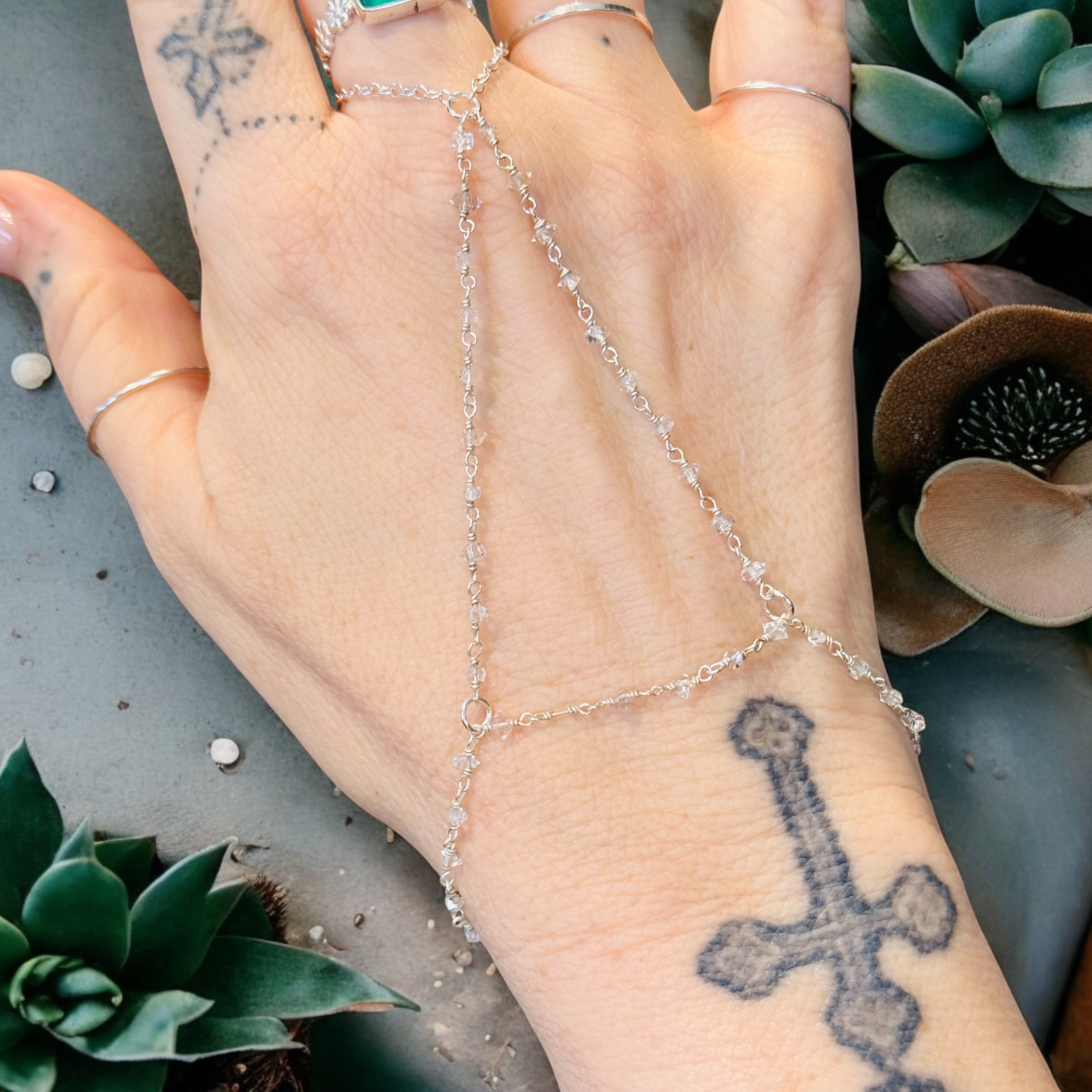 One-Of-A-Kind Crystal Quartz Gemstone Hand Chain Sterling Silver 2 Strand