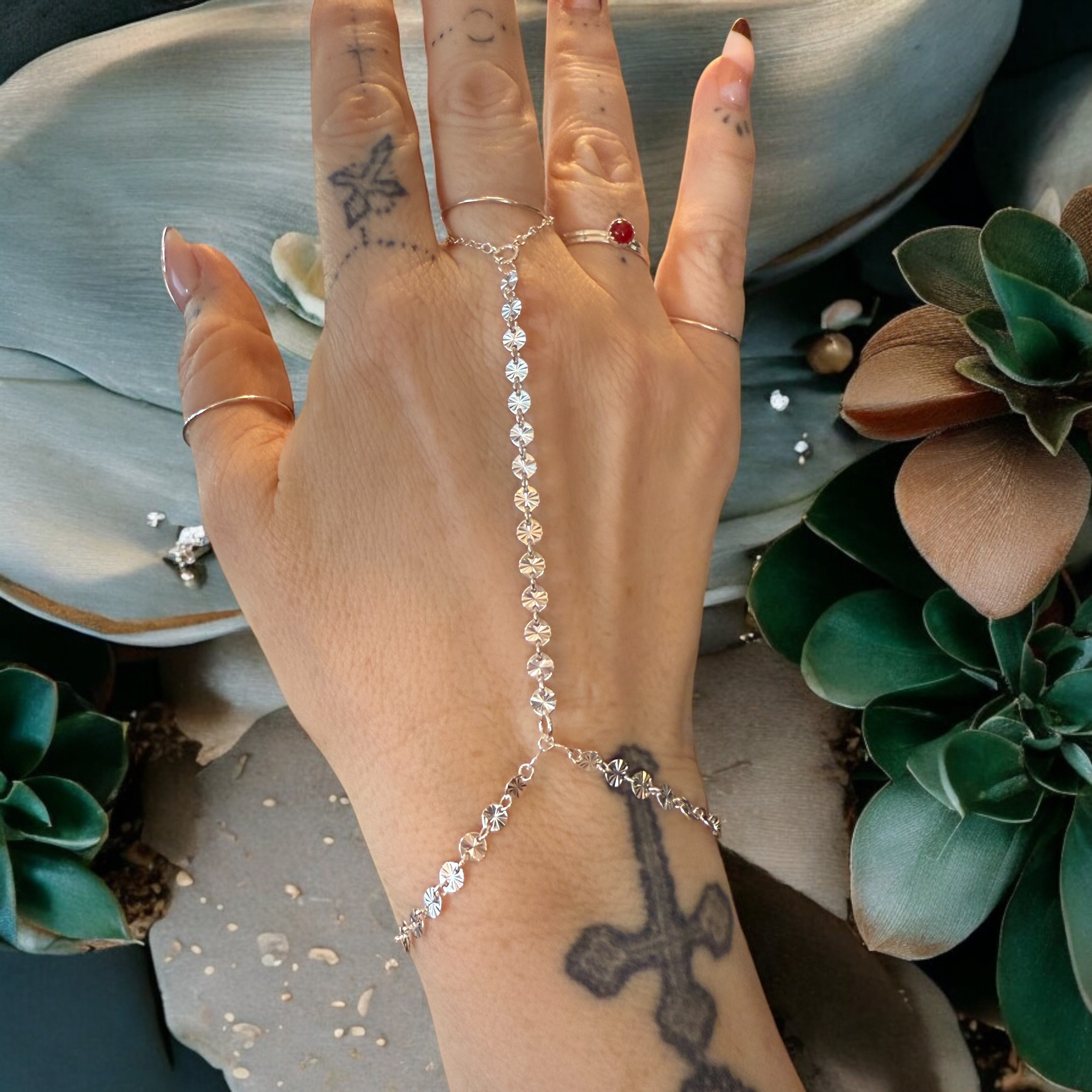One-Of-A-Kind Diamond Cut Burst Hand Chain Sterling Silver