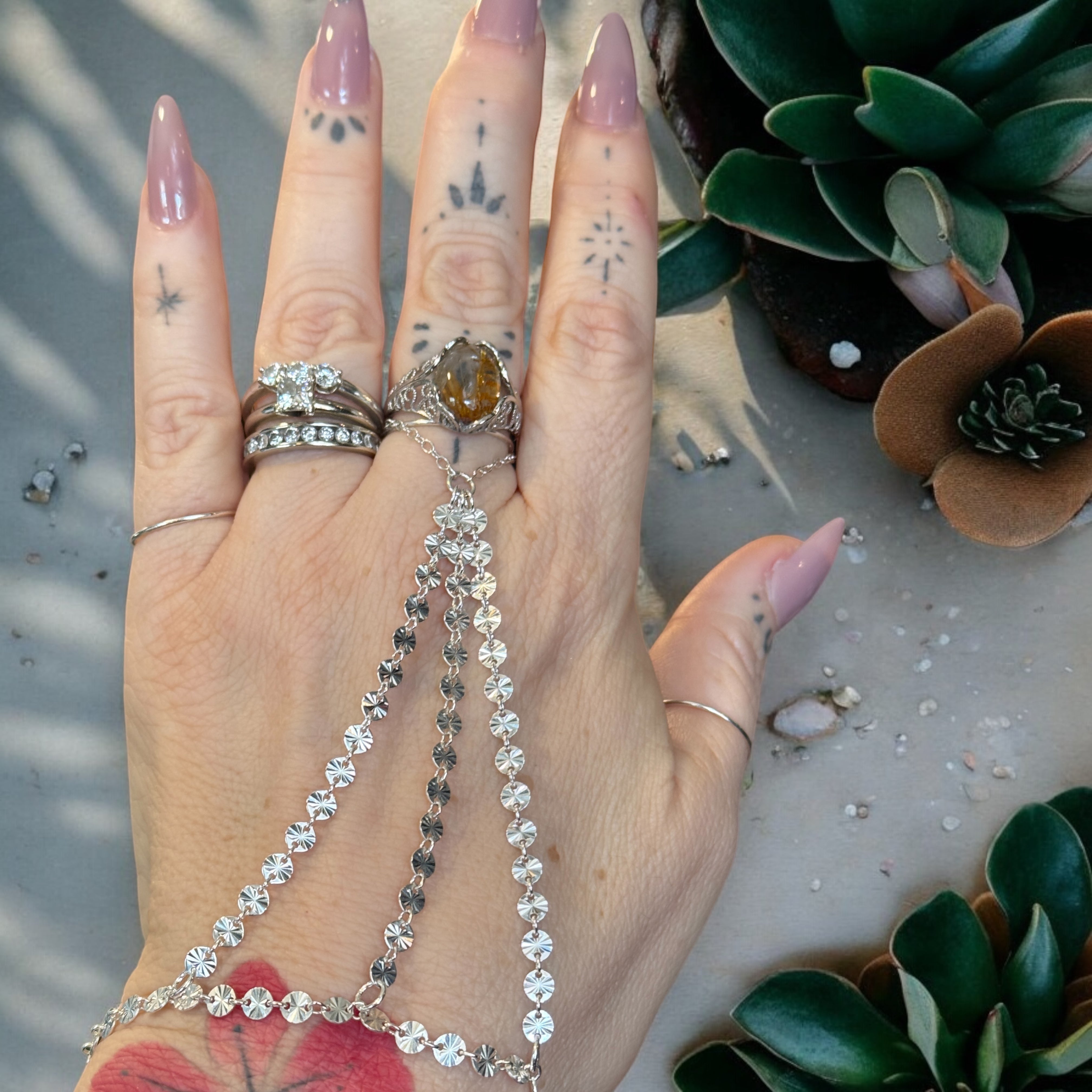 One-Of-A-Kind Diamond Cut Burst Disc Hand Chain 14k GF & 925 Sterling Silver 3 Strand PREORDER