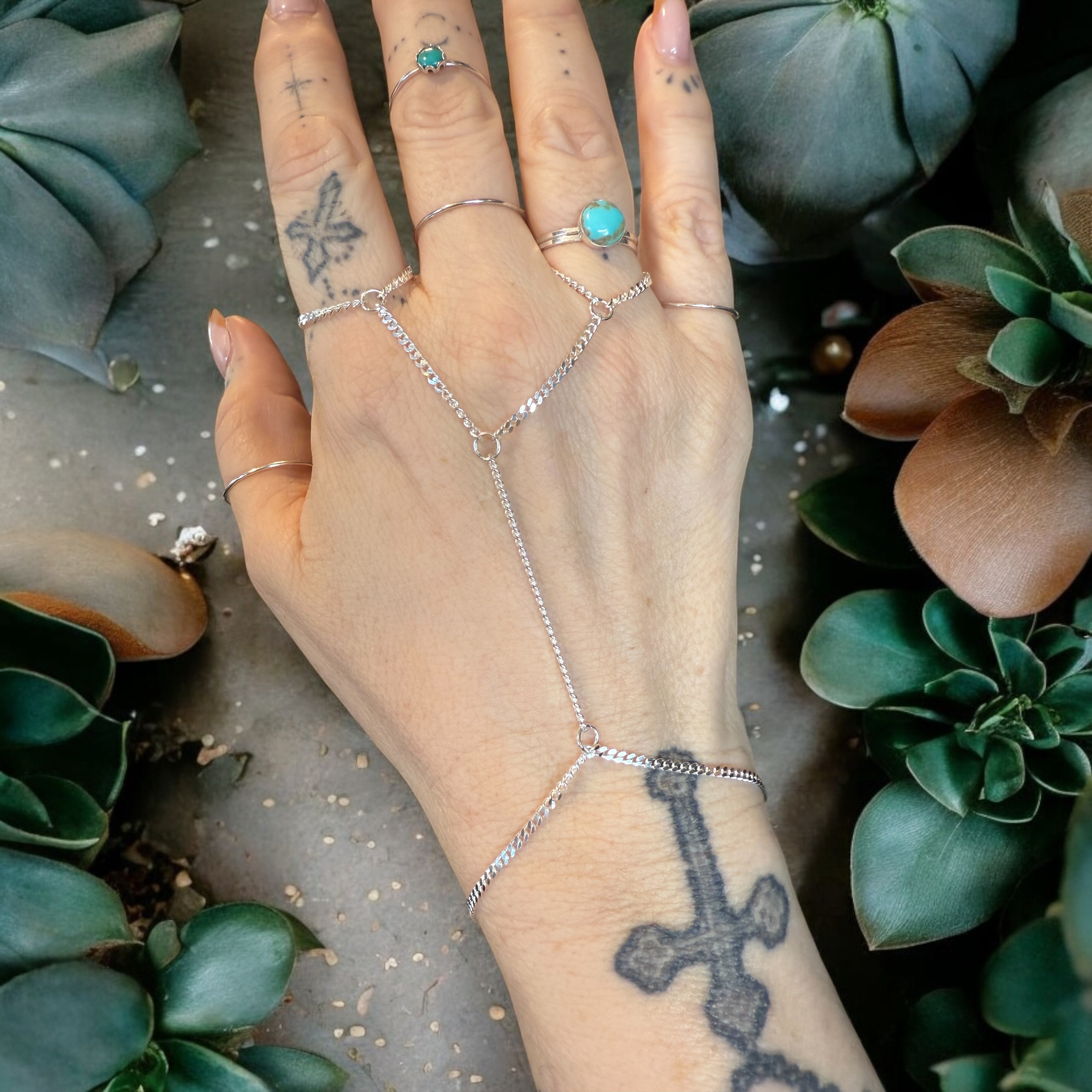 One-Of-A-Kind Gemstone Hand Chain Sterling Silver 2 Strand with Attached Chain Ring