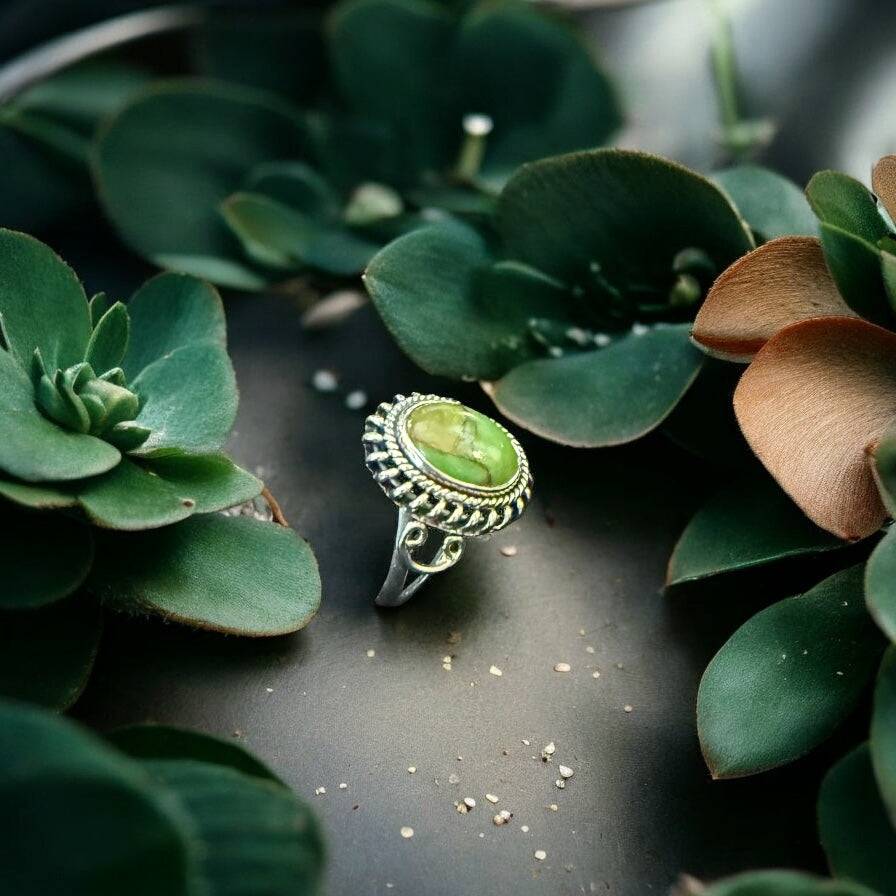 One of a Kind Green Copper Mojave Turquoise Oval Sterling Silver Ring