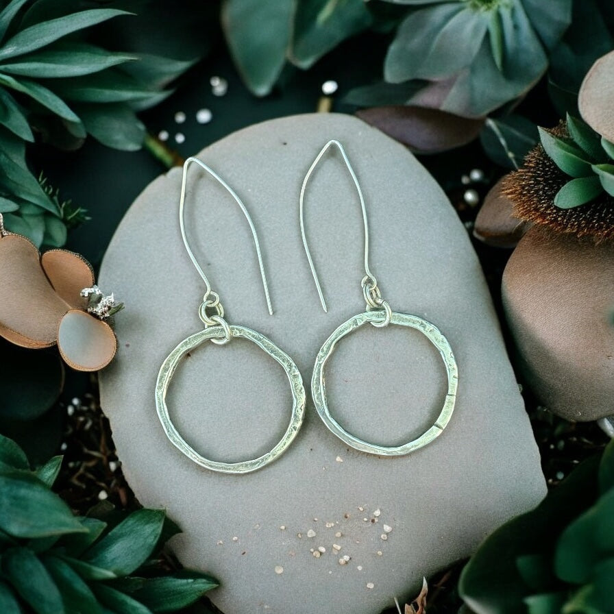 One of a Kind Hammered Circle Oxidized Sterling Silver Drop Earring