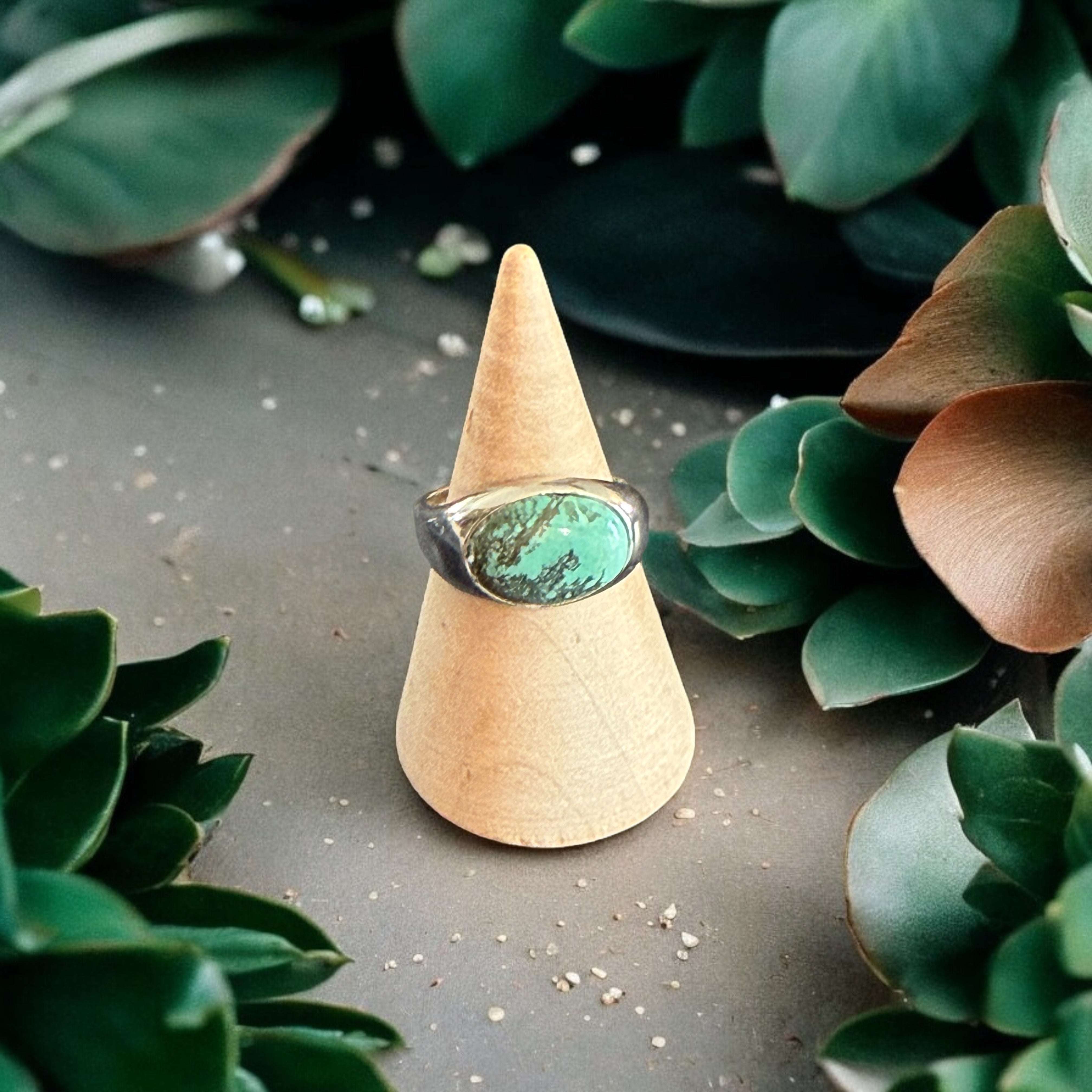 One-Of-A-Kind Horizontal Oval Kingman Blue Turquoise Sterling Silver Adjustable Ring