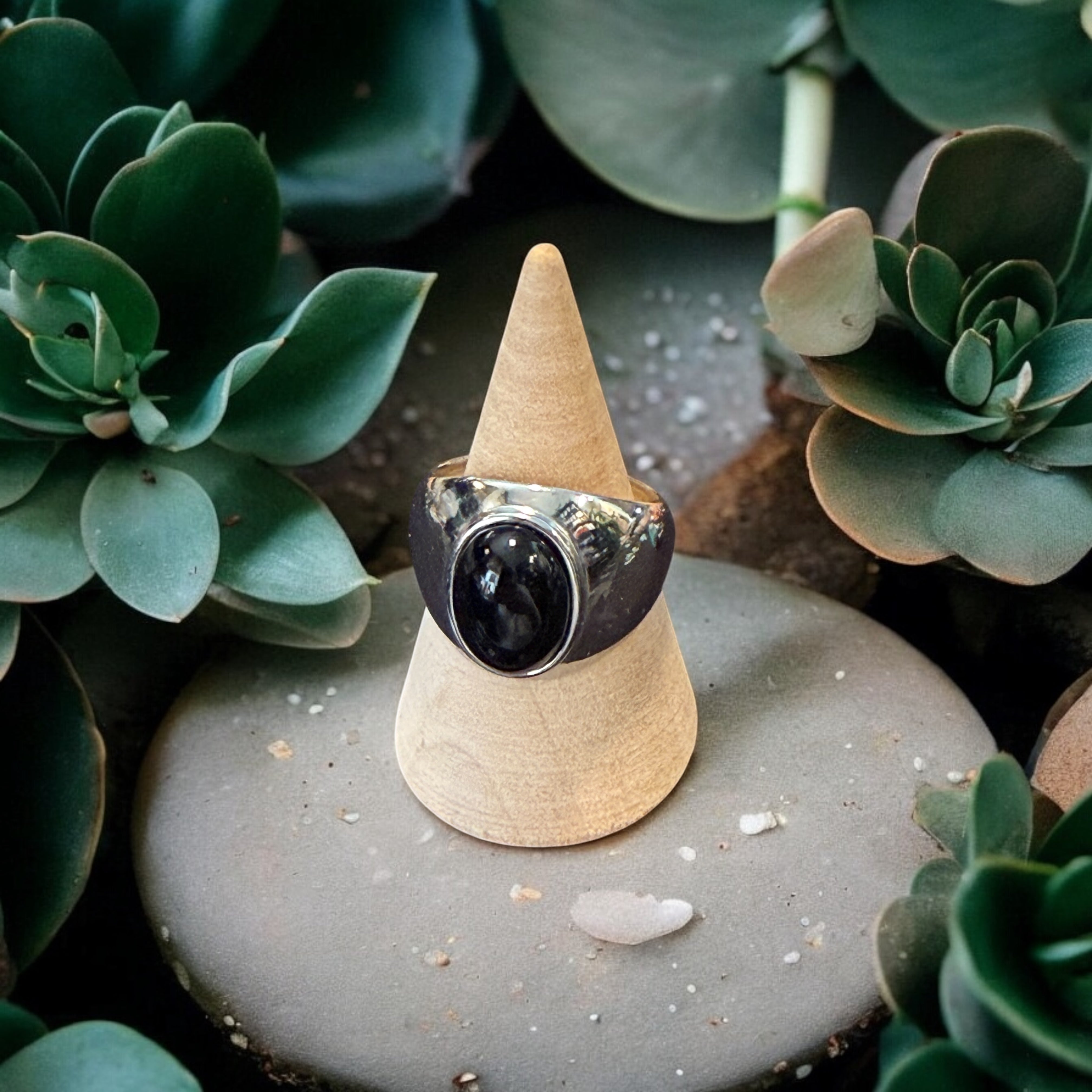 One-of-a-Kind Oval Natural Black Onyx Sterling Silver Dome Adjustable Ring