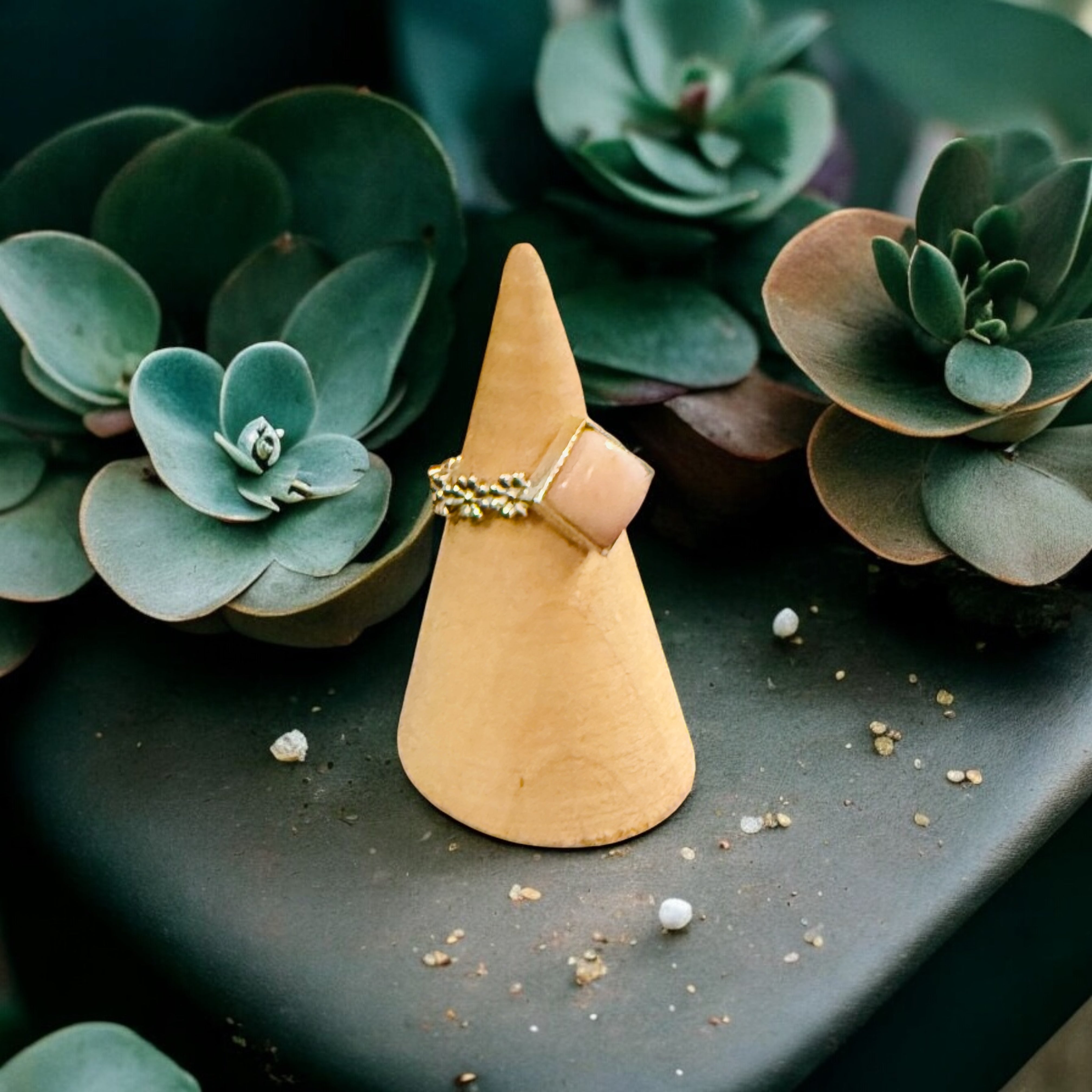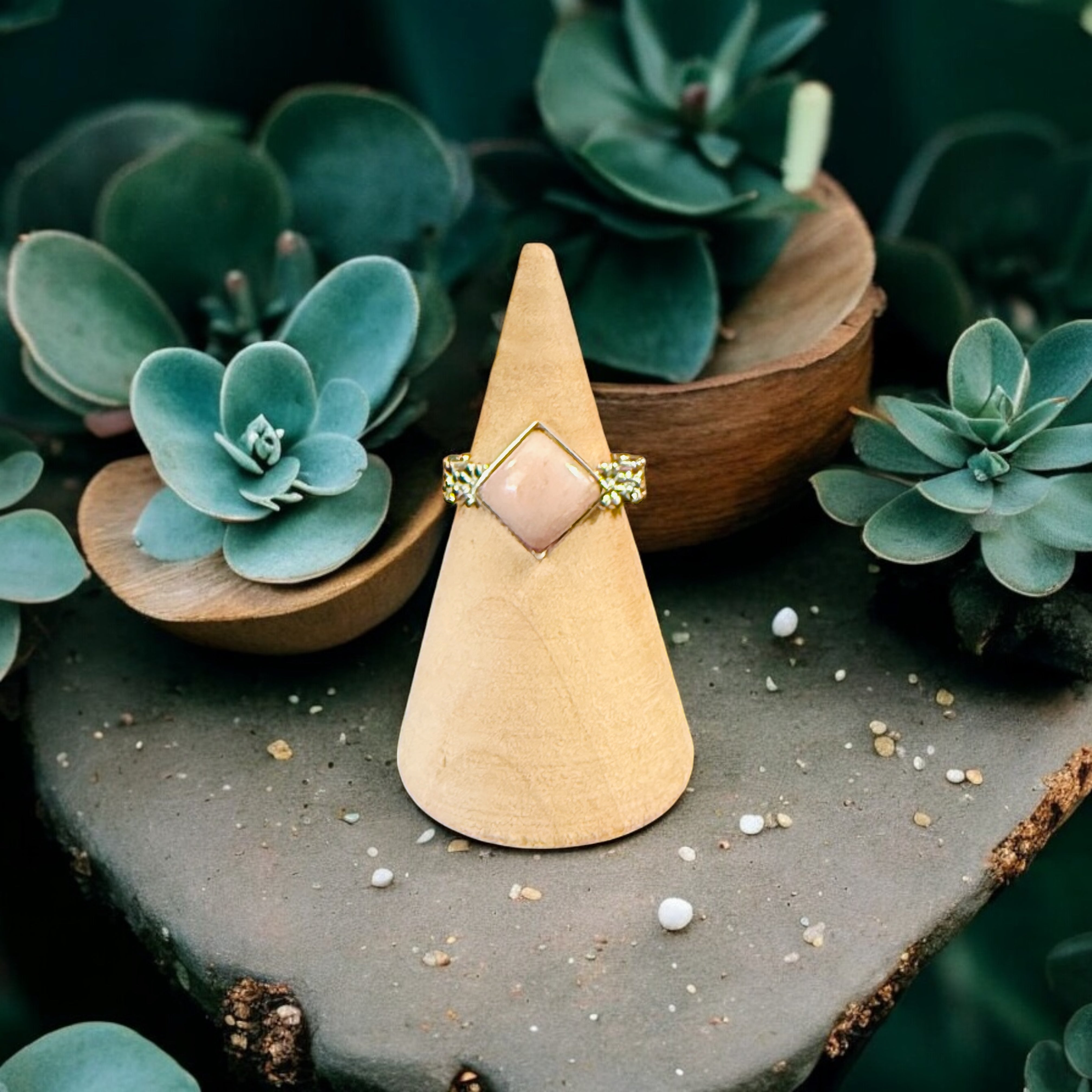 One-of-a-Kind Peruvian Pink Opal Floral Band Sterling Silver Ring