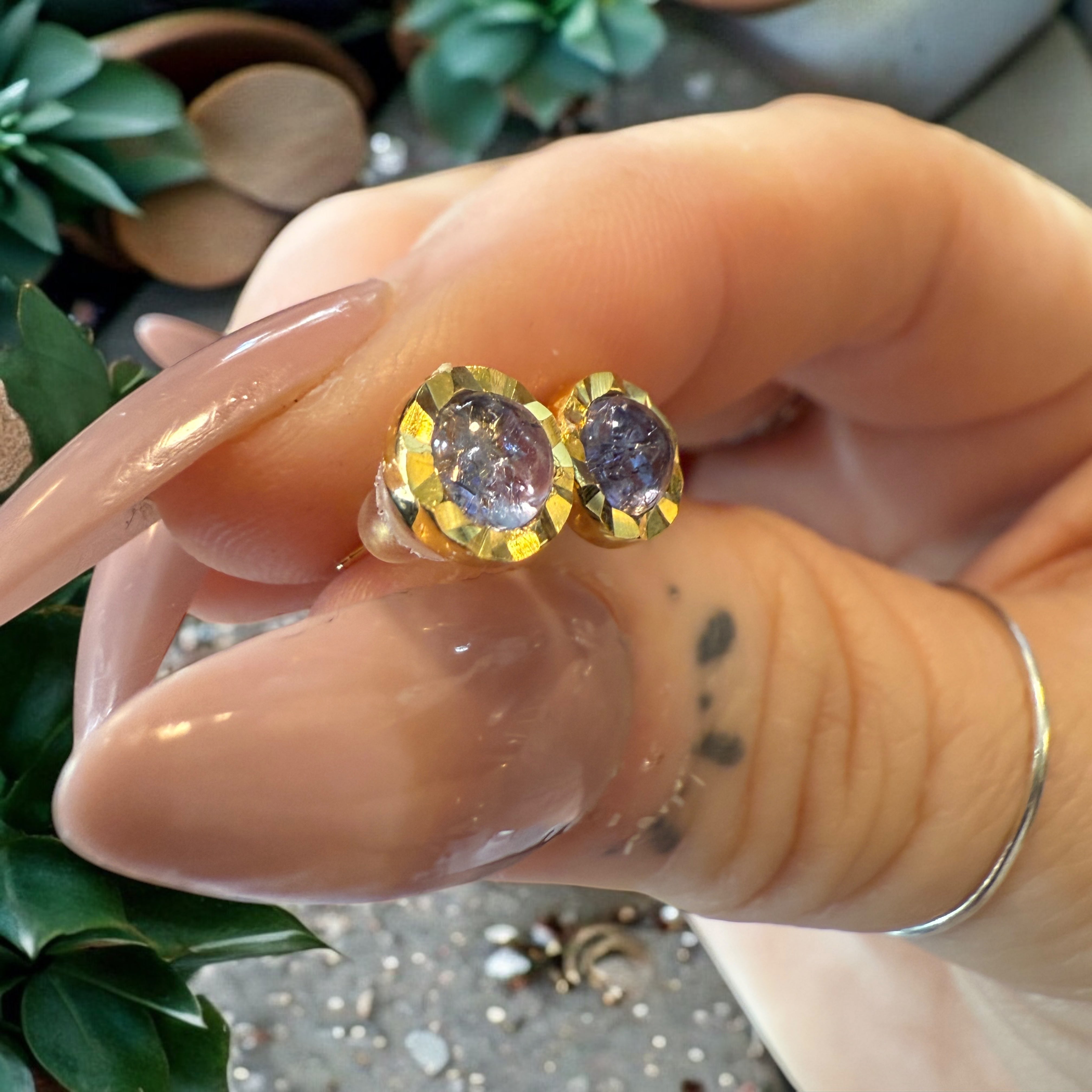One-of-a-Kind AAA 5mm Round Genuine Tanzanite 14k GP Sterling Silver Stud Earrings