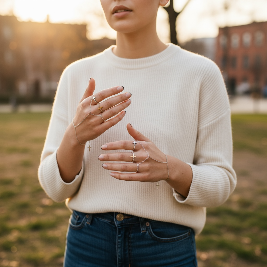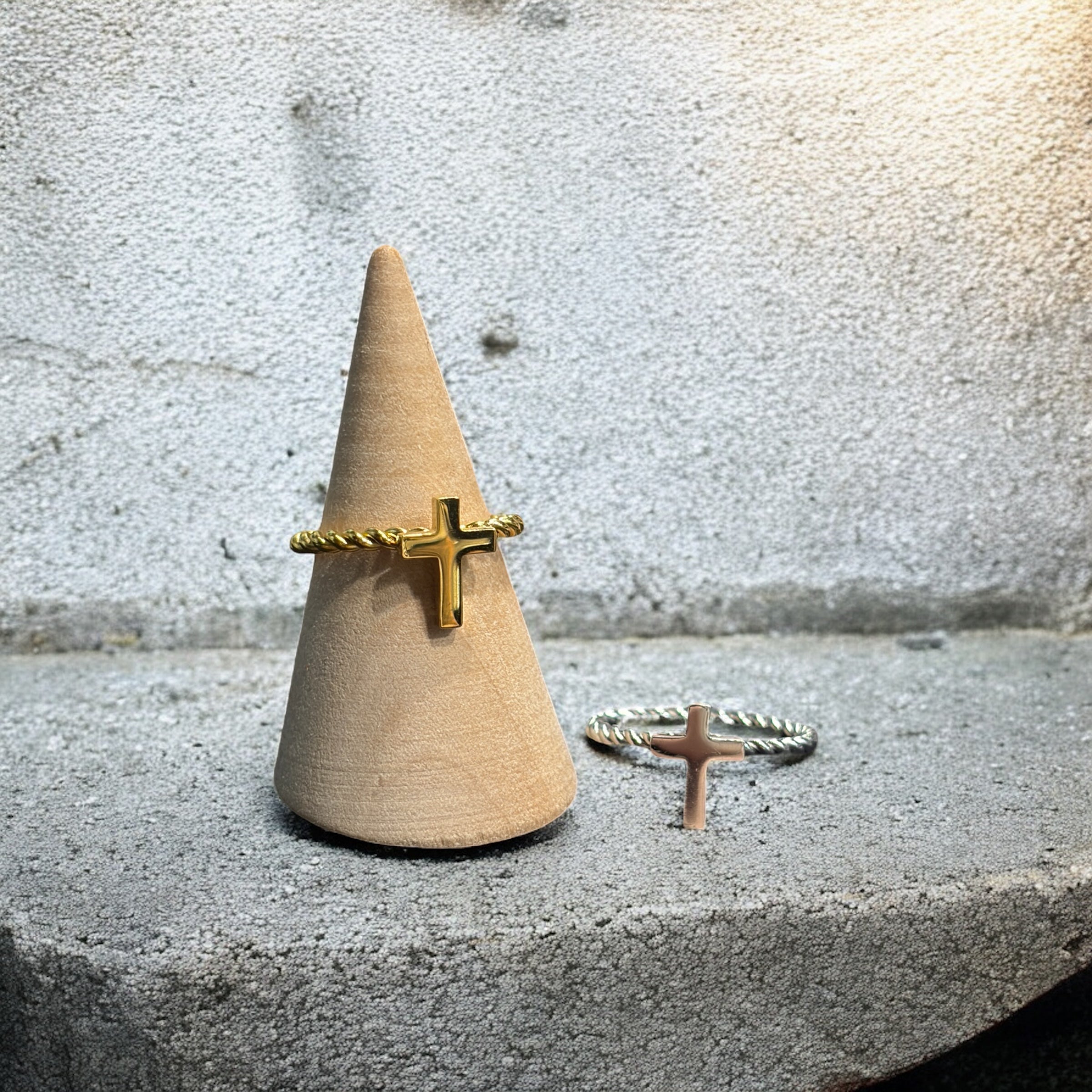 Waterproof Twisted BandCross Ring Polished Stainless Steel & 18k Gold PVD Plated Stainless Steel