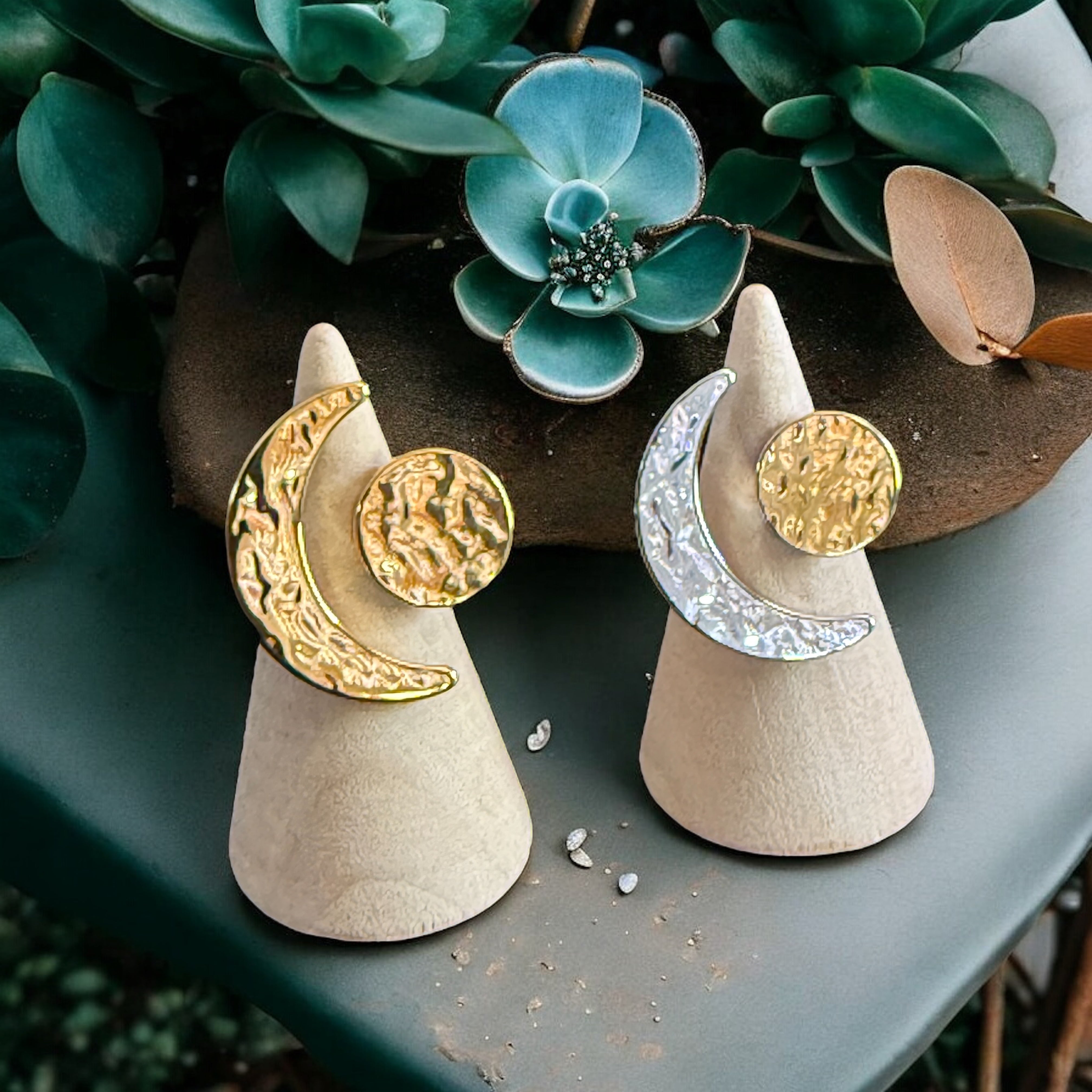 Waterproof Crescent Moon Ring Polished Stainless Steel & 18k Gold PVD Plated Stainless Steel