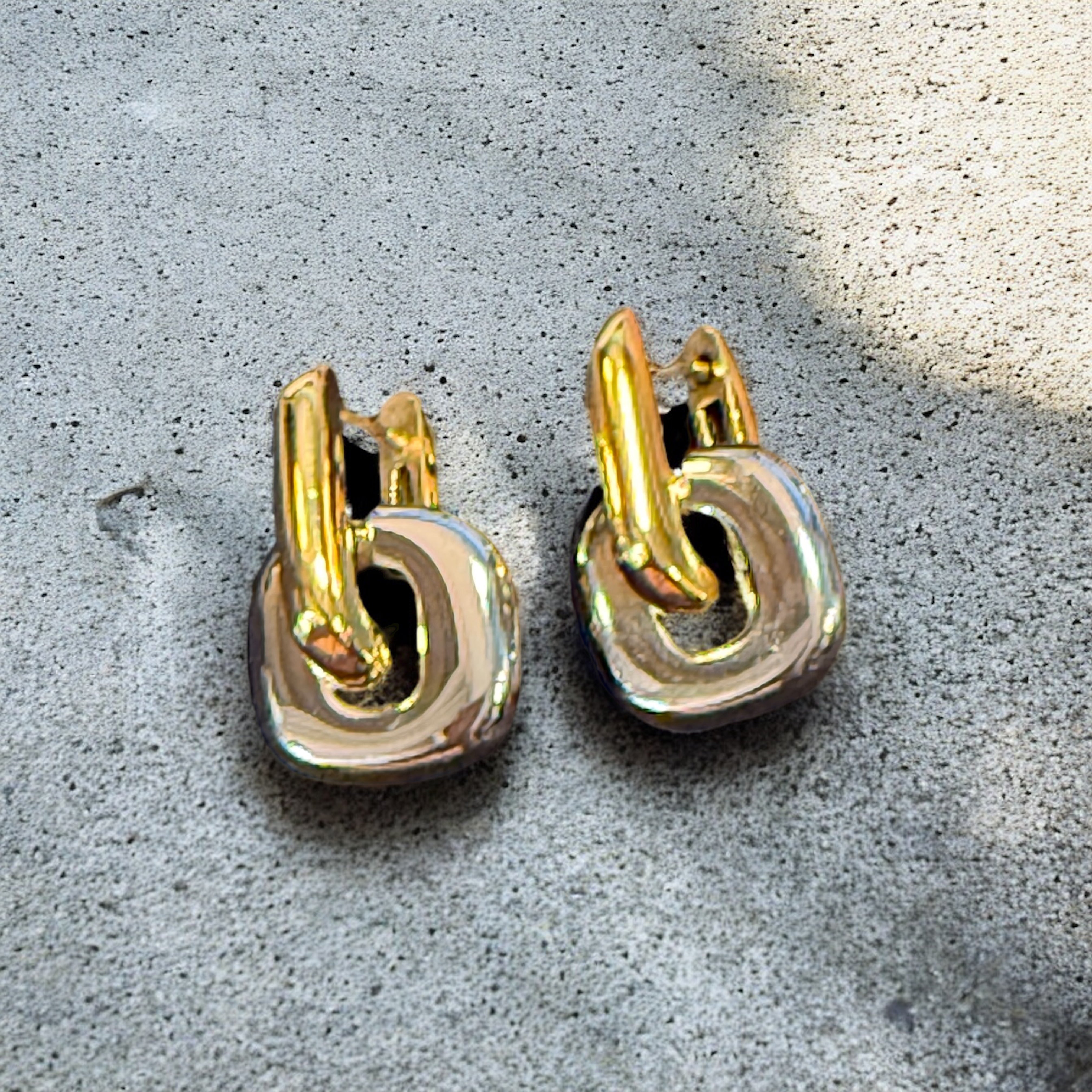 Waterproof Two-Tone Oblong Huggie with Detachable Square Charm