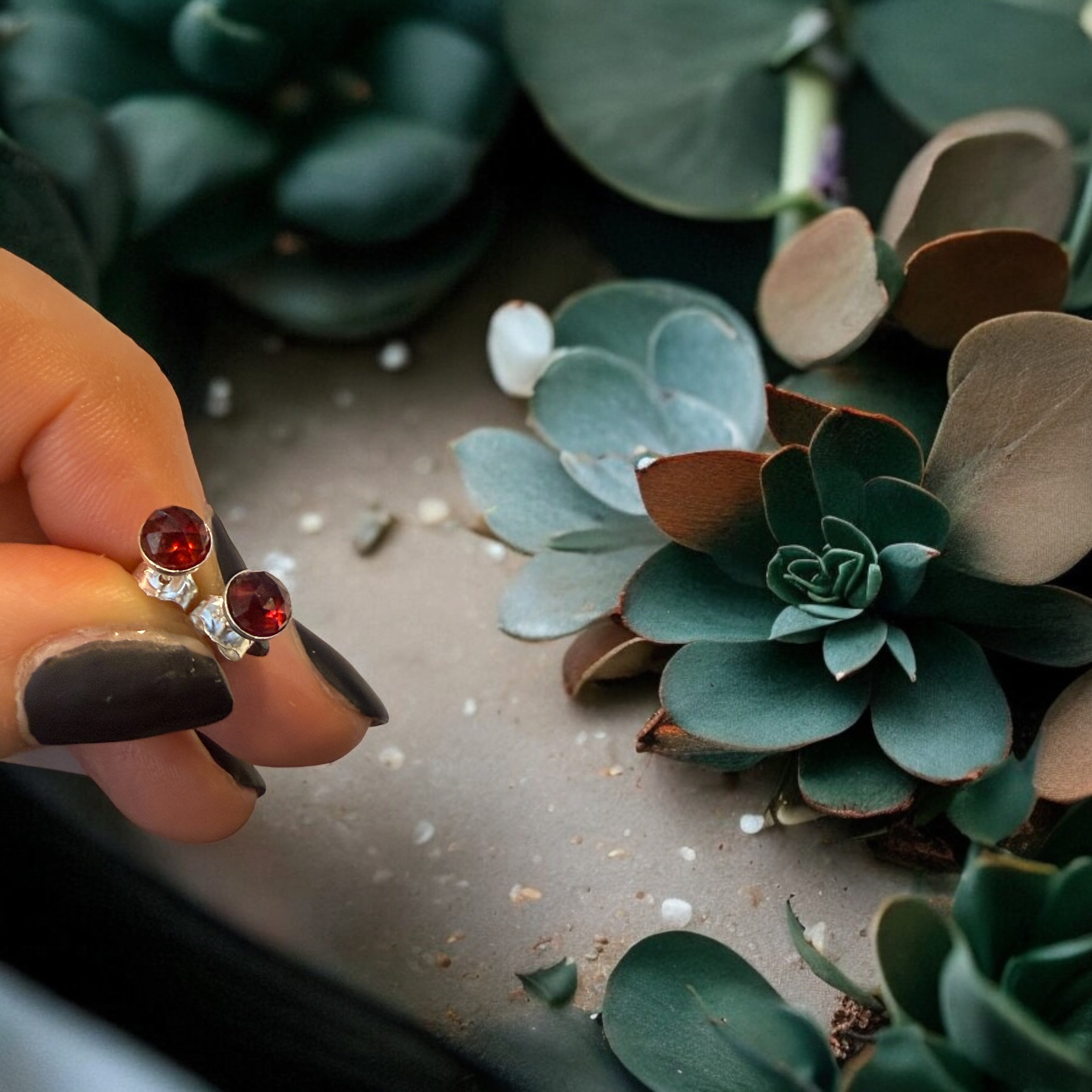 One-of-a-Kind 5mm Round Faceted Garnet Sterling Silver Stud Earrings