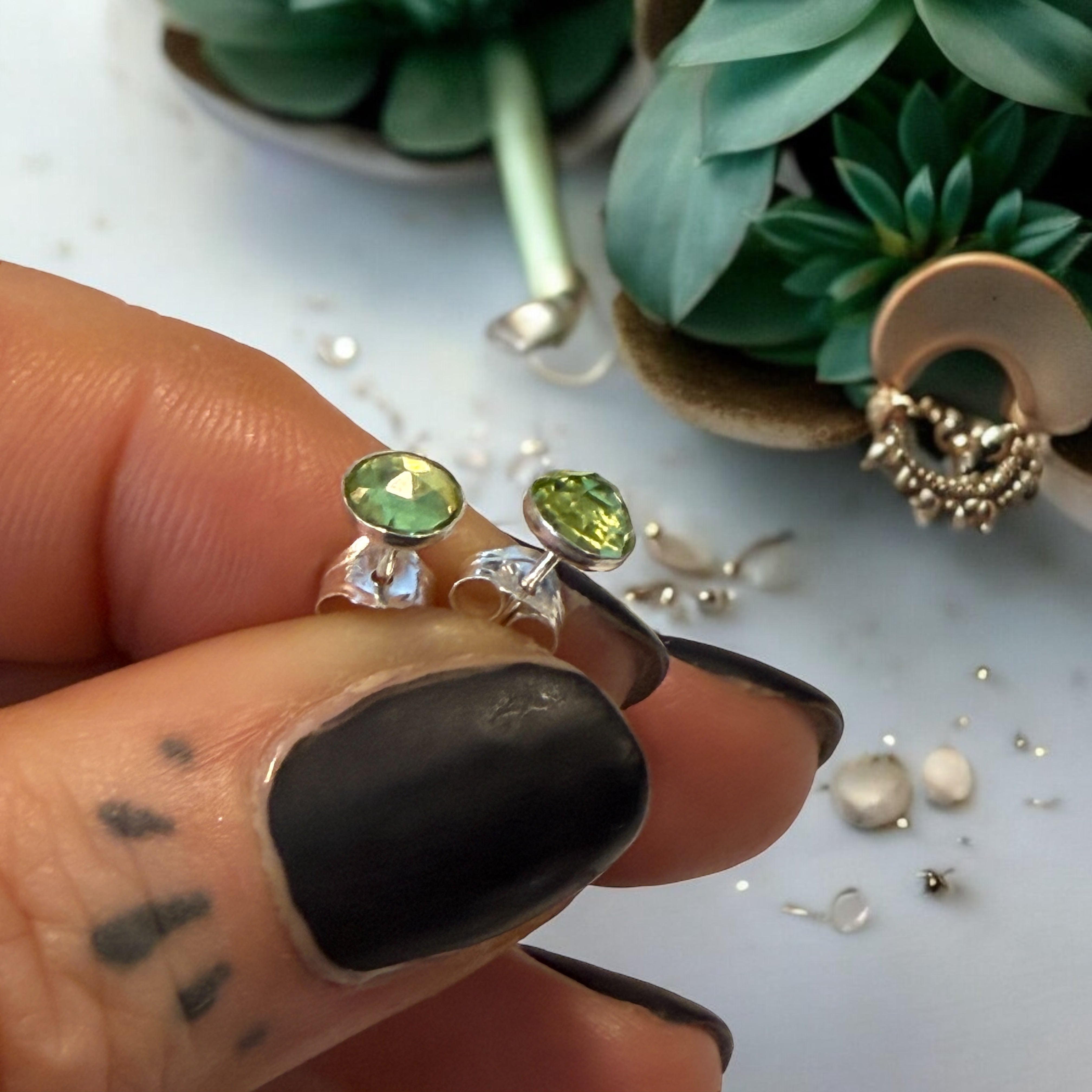 One-of-a-Kind 5mm Round Faceted Peridot Sterling Silver Stud Earrings