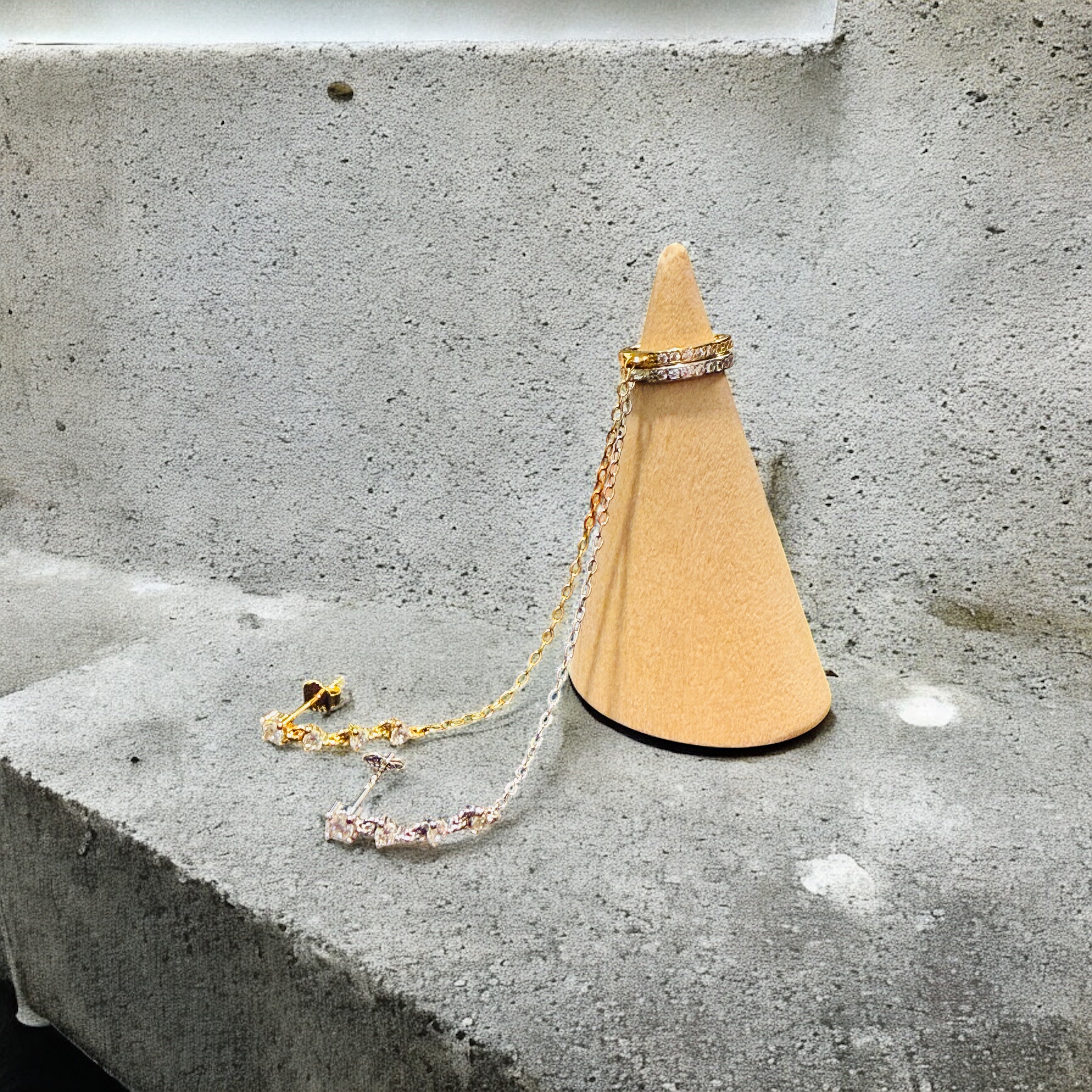 Waterproof Dainty Zircon & Chain Stud with Ear Cuff Solid Sterling Silver (Sold as a Single